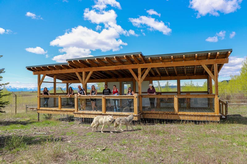 This tour takes you inside our Engadine or Galatea enclosure into a large viewing platform with one of our guides. Enjoy the opportunity to learn all about the Sanctuary and get an introduction to what wolfdogs are all about through our 30-minute presentation. This tour offers a "front row" viewing experience of the wolfdogs and the opportunity to photograph them without visual barriers. You will also have full access to your very own wolfdog expert!